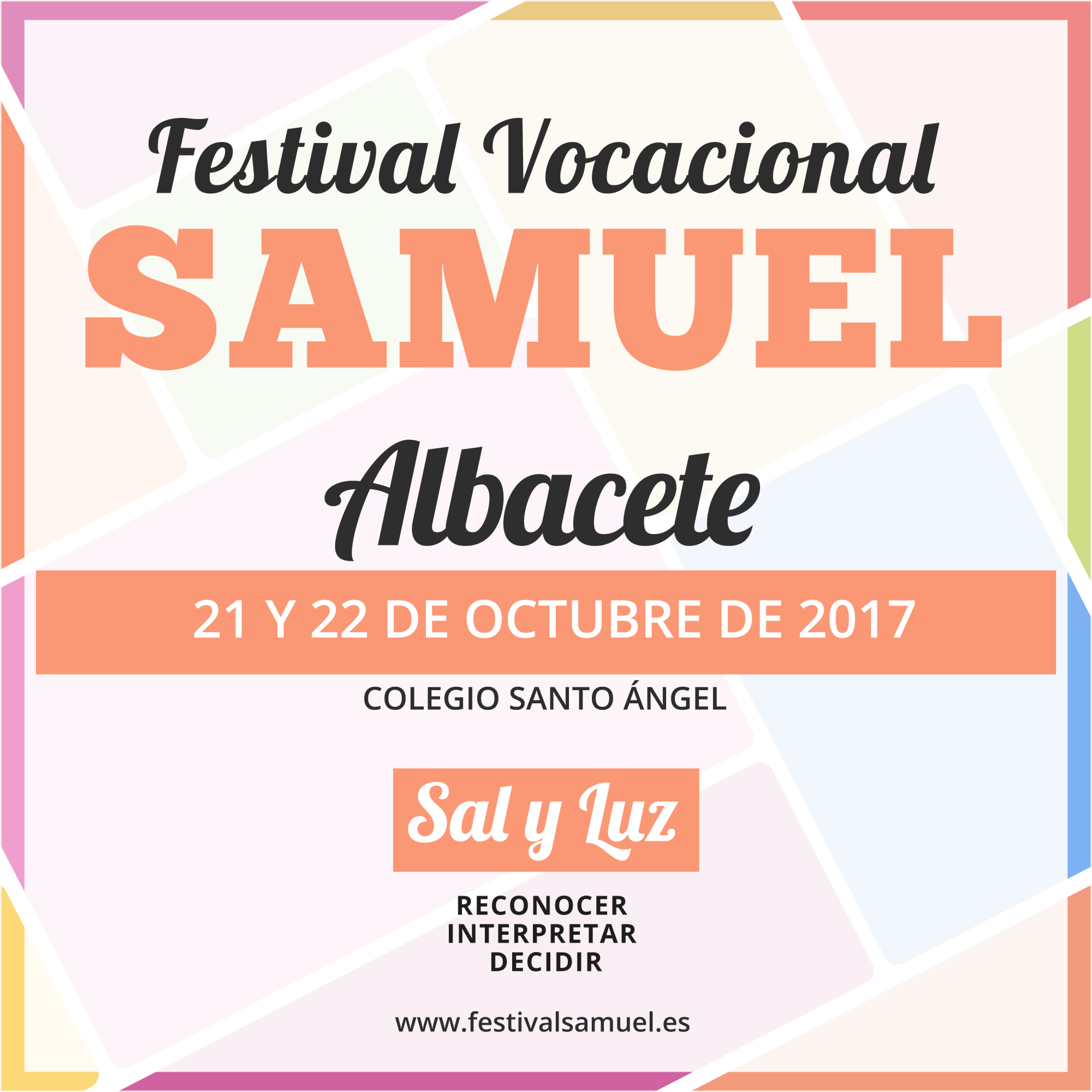 Arrancamos la décima edición Festival Vocacional Samuel 2017 que tendrá lugar en Albacete, en el Colegio Santo Ángel, los días 21 y 22 de Octubre de 2017.