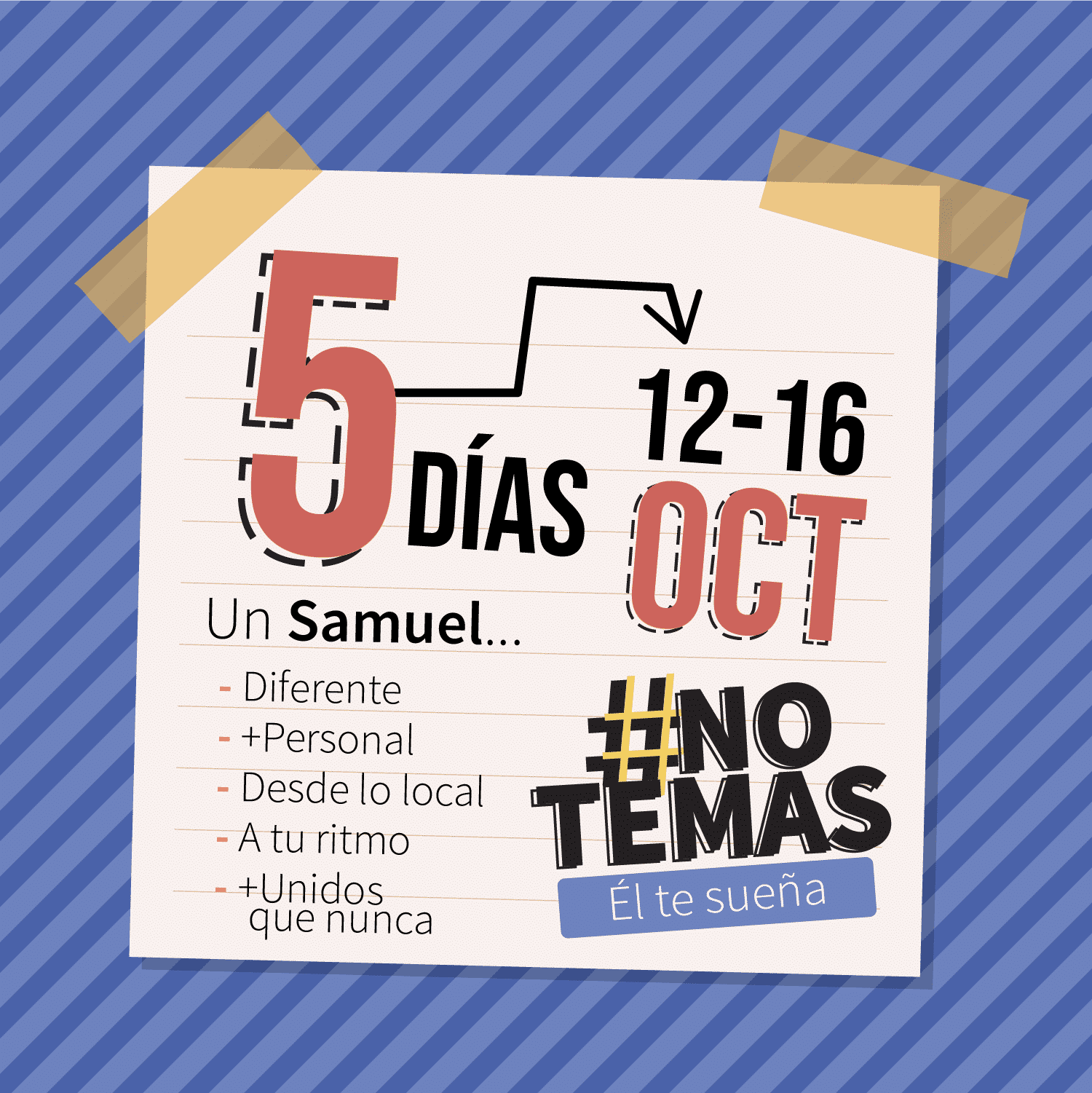 En este año de cambios, el #Samuel20 se adapta al nuevo curso, llega la EDICIÓN ESPECIAL, este año ¡será de 5 días! Del 12 al 16 de Octubre.